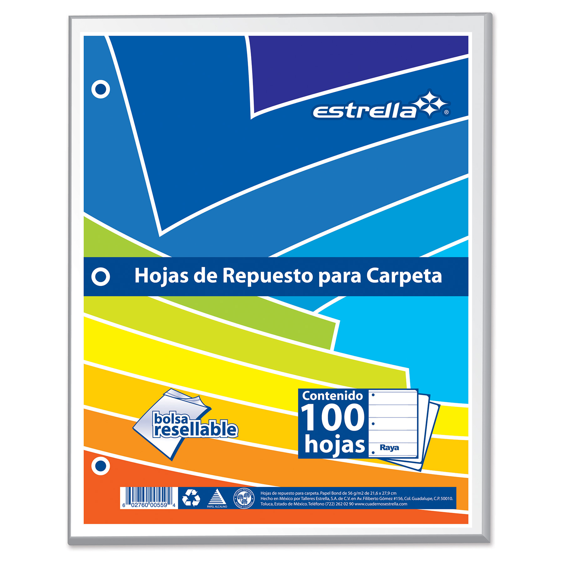 Hojas de Repuesto para Carpeta Estrella 0557, Raya, Carta, 100 h.